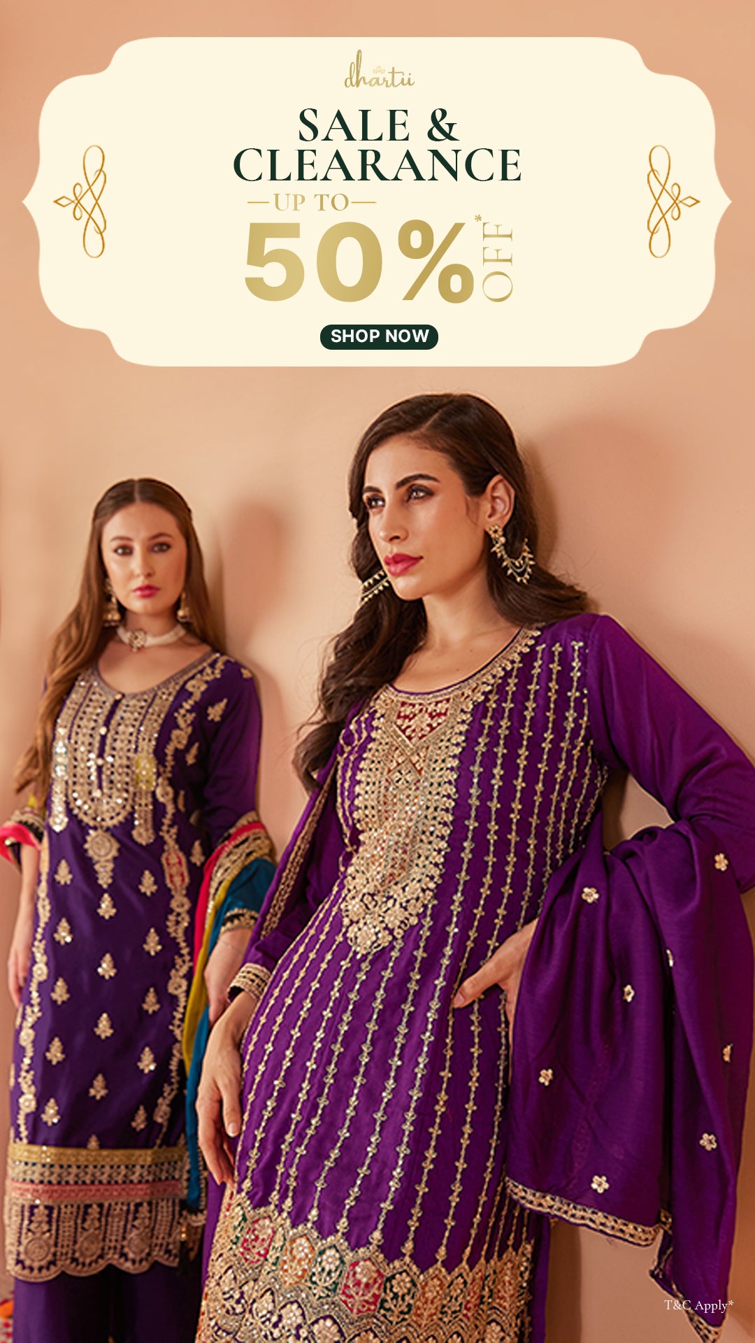 Show product Purple Chinon Fabric Embroidered Suit With Flared Pants & Dupatta - Set Of 3