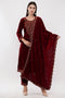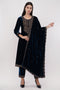 The Dark Green Velvet Suit Set with Pants & Dupatta features rich velvet fabric adorned with intricate coding embroidery work. This elegant set includes a matching dupatta, making it perfect for formal occasions or evening gatherings, offering a blend of luxury and sophistication. - Suit Pants, & Dupatta - Coding Embroidery work - Fabric- Velvet - Color- Dark Green - Sleeves- Full - Set of 3