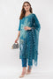 Muslin Organza Dupatta With Digital Printed Teal Blue Suit - Set Of 3