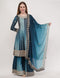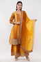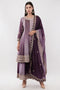 Purple Chinon Fabric Embroidered Suit With Flared Pants & Dupatta - Set Of 3